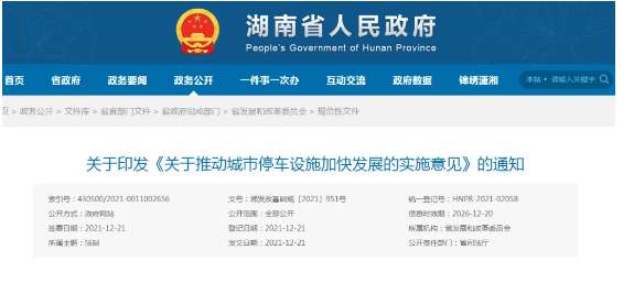 湖南省四部門聯(lián)合發(fā)布關(guān)于印發(fā)《關(guān)于推動(dòng)城市停車設(shè)施加快發(fā)展的實(shí)施意見》的通知